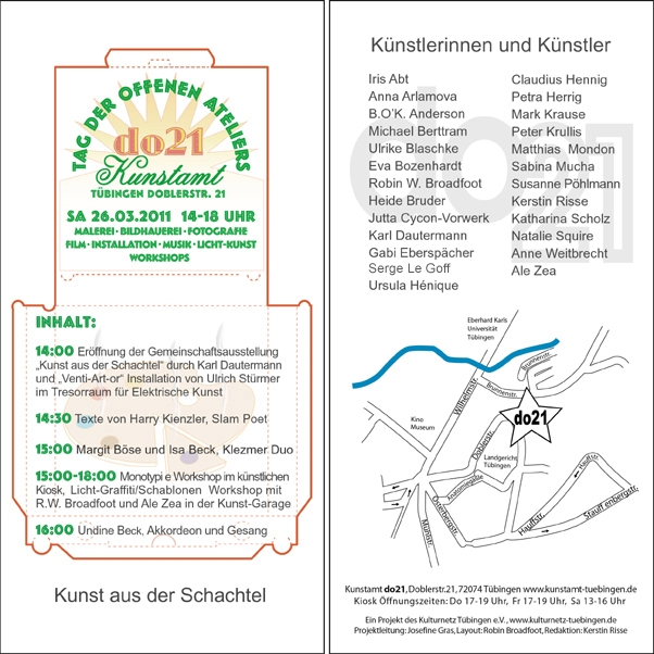 KUNSTAMT TÜBINGEN Doblerstraße 21 72074 Tübingen Ateliers Galerie do21 Tresorraum für Elektrische Kunst www.kunstamt-tuebingen.de ![]()