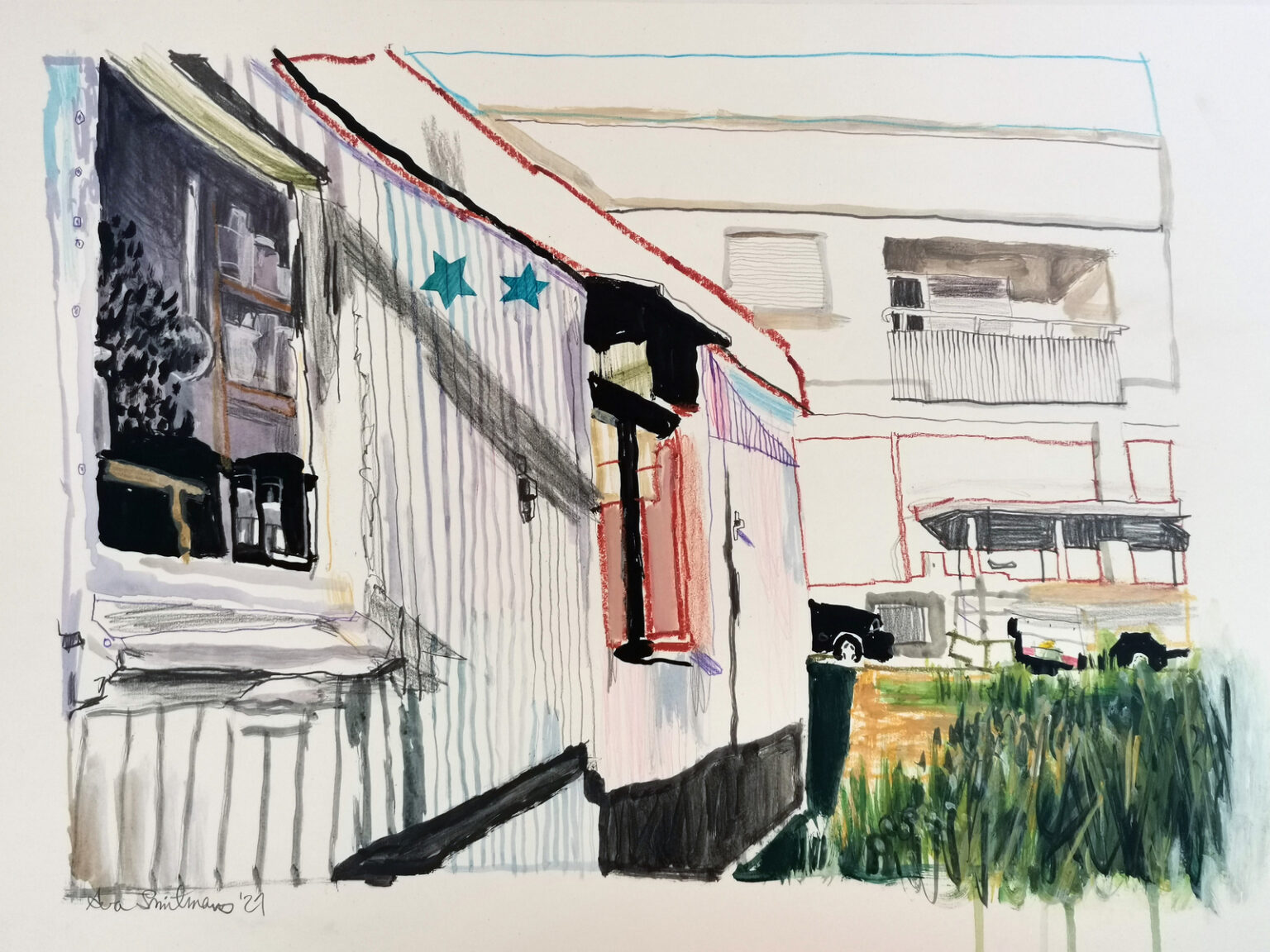 „Weststadt Nachbarschaft“, Mischtechnik auf Papier, ca. 36 x 50 cm, Ava Smitmans 2021
