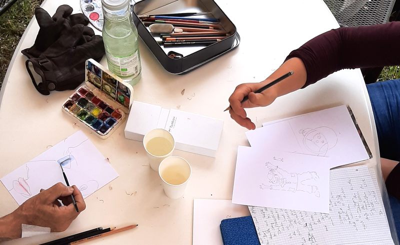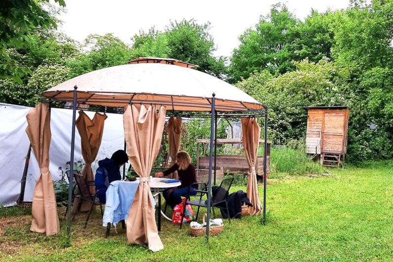 Bei leichtem Regen besteht die Möglichkeite im Ateliercontainer, im Kunst-Bauwagen oder unter Pavillons auf dem Außengelände zu arbeiten. Bei heftigem Regen oder Gewitter sagen wir die Veranstaltung ab.